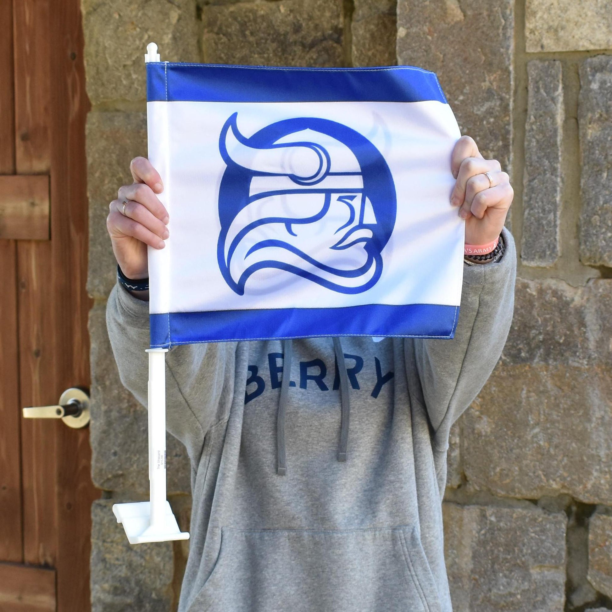 Car Flag - White with Blue Viking Head
