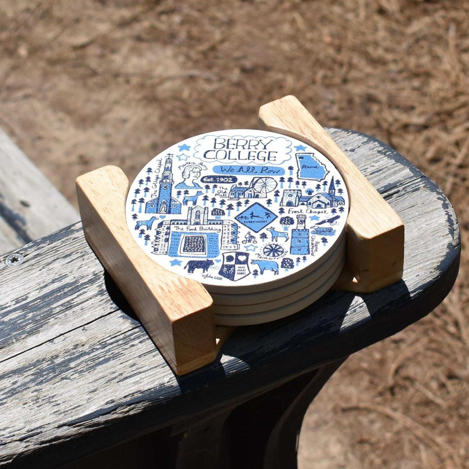 - Julia Gash 4-Pack Round Stone Coasters with Wood Holder