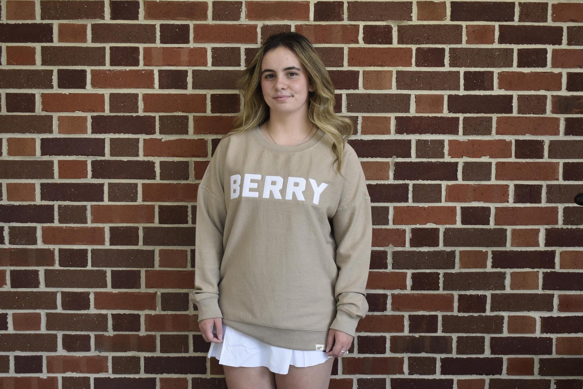 Khaki Reverse Terry Crew w White Berry Applique